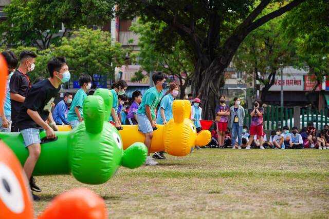 這是民族國中校慶活動中,連續第二年由熊麻吉活動團隊承辦,非常感謝民族國中支持與肯定。今年與去年最大不同處,在於熊彥棋教練特別回饋學校,僅以二隻充氣毛毛蟲租用(租借)價格,但卻提供四隻毛毛蟲數量給學校,同時還有專業攝影師(去年此趣味競賽相同如此),其因素在於:除感謝學校支持外,也認為四隻毛毛蟲在趣味競賽方面增加了刺激與熱鬧,且拍照及攝影下更為壯觀。